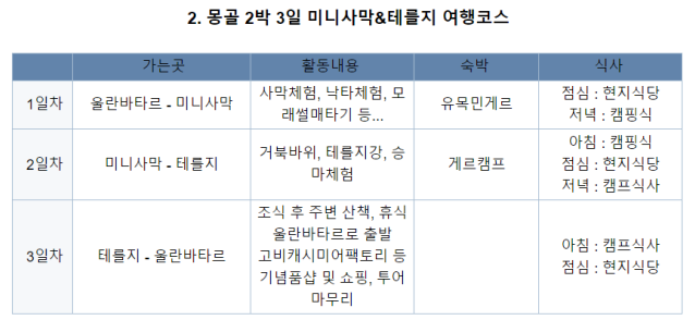 고비사막 코스는 기본 4박5일로 진행되구요.