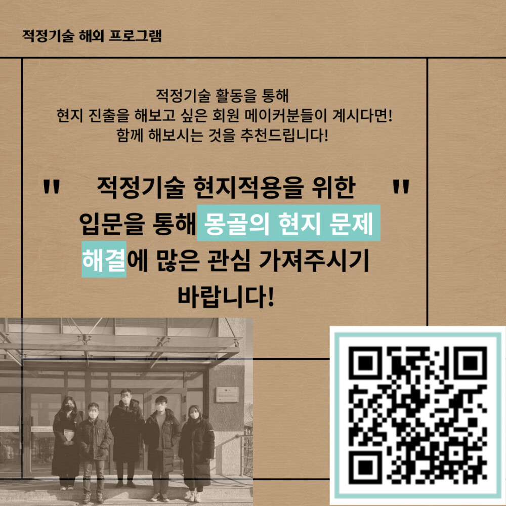 몽골에 관심 있는 누구나! 경험 해 보지 못한 유익한 적정기술 문화활동을 해 볼 수 있습니다.
