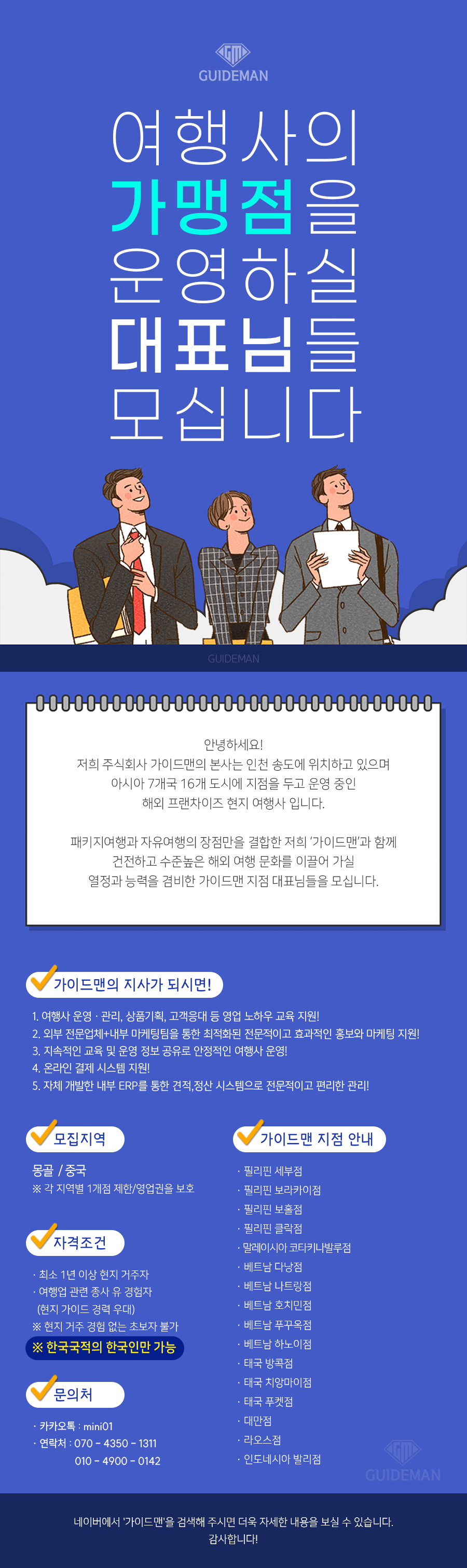 [제휴점모집] 자유패키지 단독투어 여행사 운영하실 대표님 모십니다.