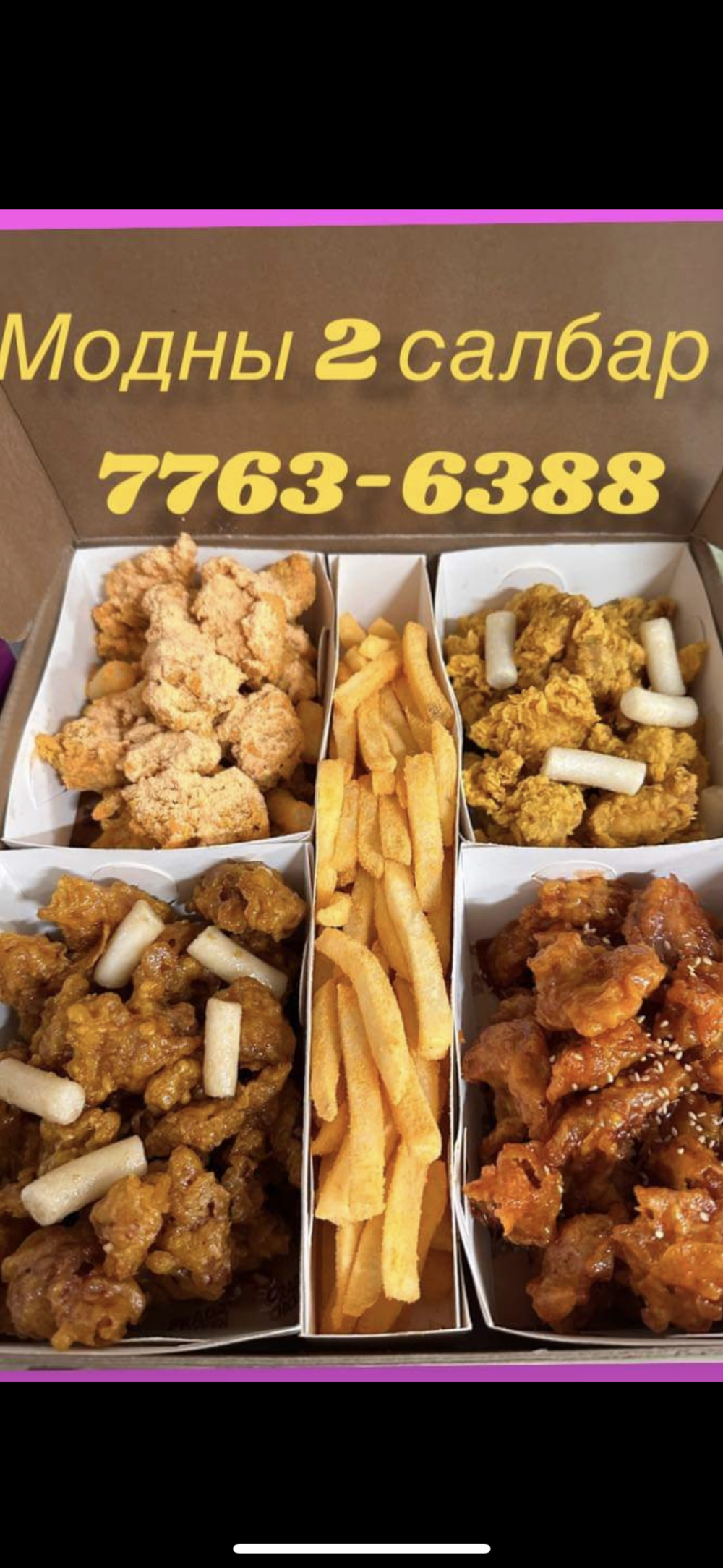 업체소개 : 몽골현지에서 한국의 치킨맛을 그대로 살리기 위해 노력합니다! 프라다 치킨은 2020년부터 운영을 시작하여 셀렝게의 가맹점과 울란바토르 총 7개의 가맹점이 있습니다. 한국 유명브랜드 소스업체와 제휴하여 몽골에서 한국의 맛을 그대로 전달하고 있습니다.